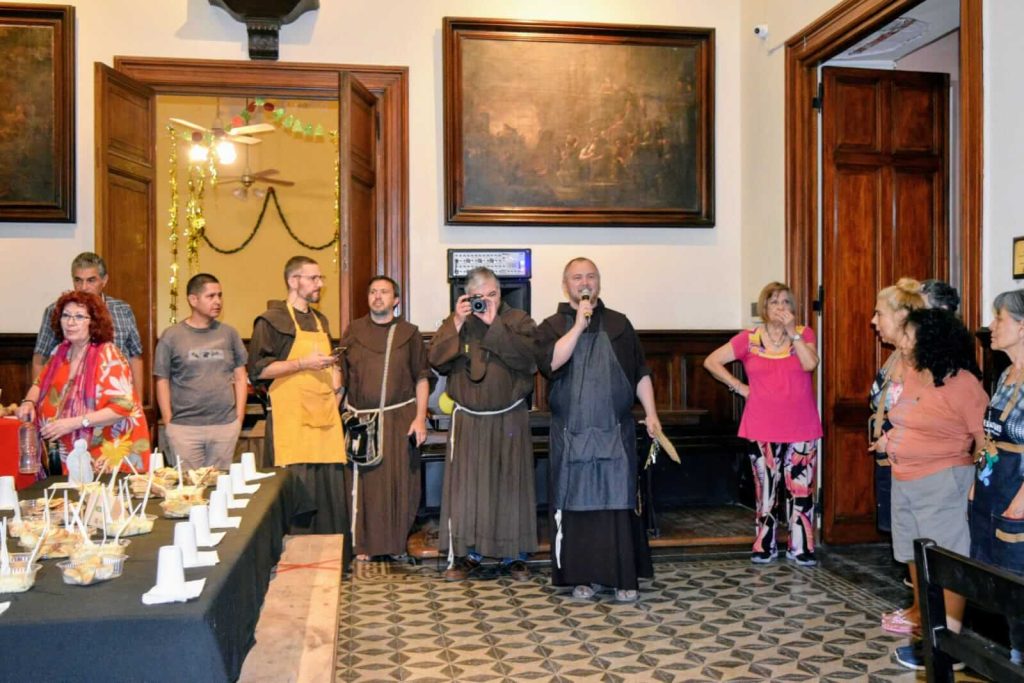 Concluida la oración, los hermanos frailes y los voluntarios entregaron un humilde presente a cada persona: una bolsa de papel con jugo, turrones, chocolates, pan dulce, budines, caramelos y otros productos. Luego, el encuentro finalizó con saludos y una despedida cargada de cariño fraterno.